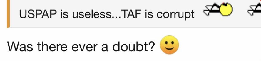Here’s a word of warning to TAF’s BOT in this regard: