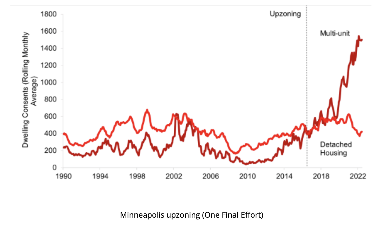There is an interesting article on the Minneapolis “One Final Effort” experiment to create more housing through upzoning.