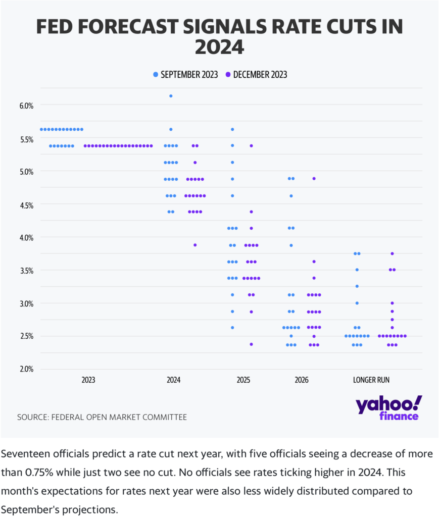 This week brought excellent news to the housing economy as the Fed telegraphed that there is a reasonable probability that their next move will be a cut in 2024 in the form of 3 cuts totaling 75 basis points.