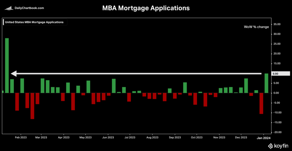 The Fed Pivot that began in December with the statement that there would be 75-basis point cuts in 2024 conveyed a sense of optimism to that economic sector after a rough two years of steep ascent in mortgage rates. Mortgage applications have rebounded, and credit has eased rapidly.