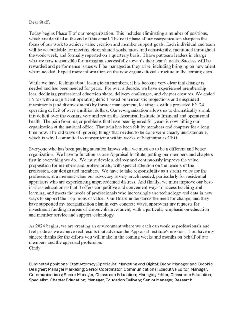 Phase II: Cindy Sends An Epic House Cleaning Letter To Chapter EDs and Presidents