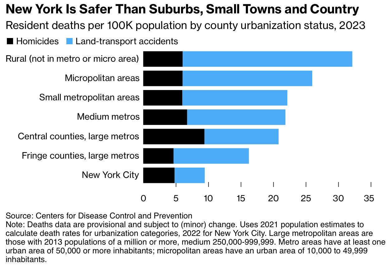 Tales of the city being dangerous aren’t matched by actual U.S. results, especially as compared to large and medium metro areas.