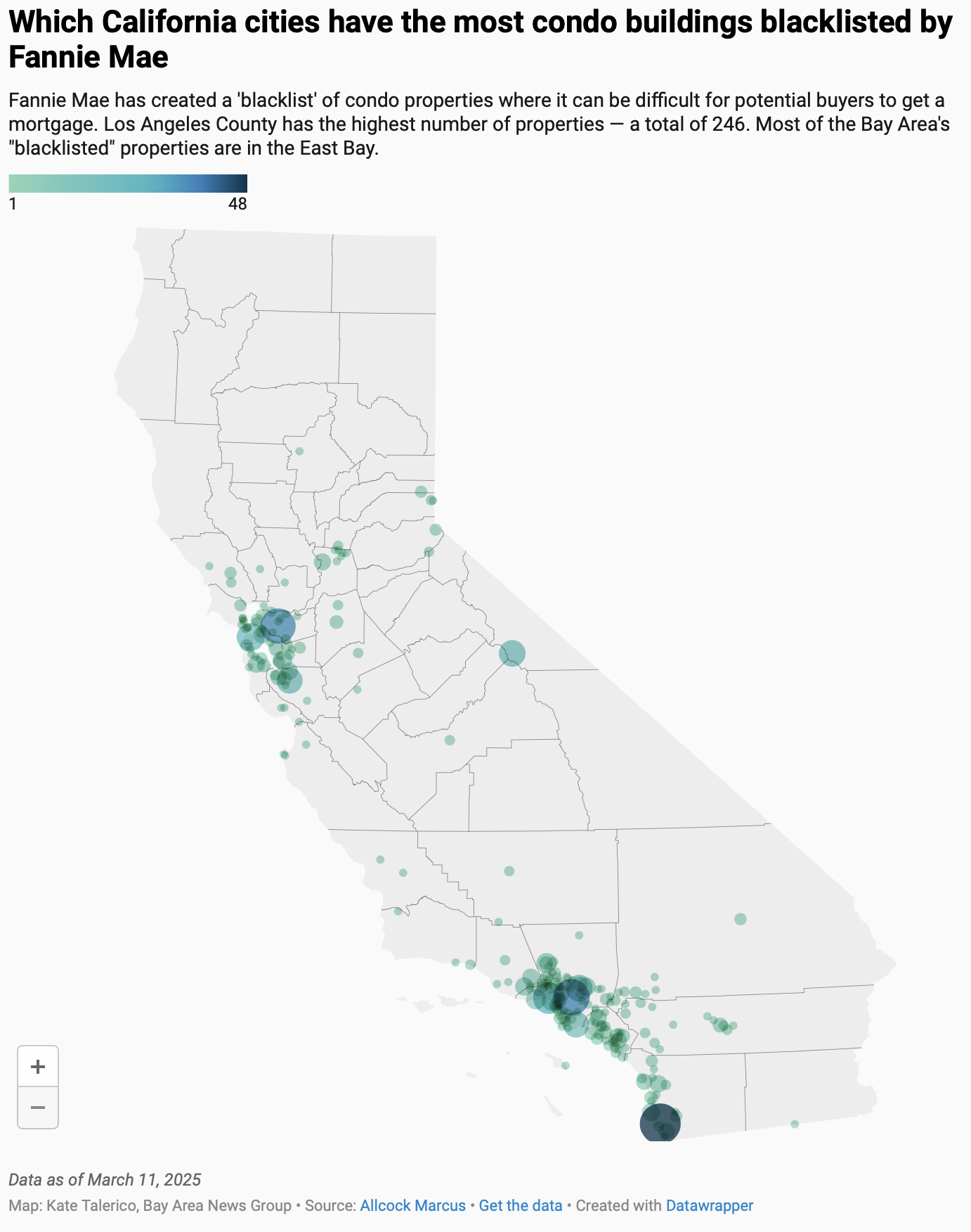 The Surfside condo collapse in Florida four years ago caused Fannie Mae to create a list of problem buildings that needed more property insurance or significant repairs. There are now 5,175 condos on the list, 1,400 are in Florida and 733 are in California. This savages home values and forces the buyers to pay cash since financing isn’t available until the project fixes the issues Fannie Mae cites.