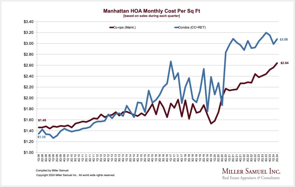 In New York City, we have been tracking the HOA costs (plus real estate taxes) of sold transactions on an average per month and an average per square foot per year. The growth of HOA charges is not linear.