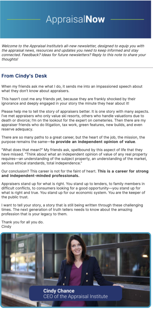 CEO Pens A New Newsletter Because Transparency Is Critical To Move The Appraisal Institute In The Right Direction