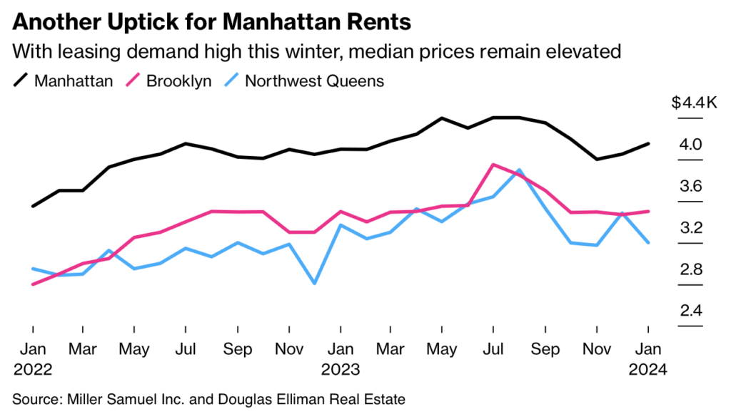 Elliman Report: January 2024 Manhattan, Brooklyn & Queens Rentals