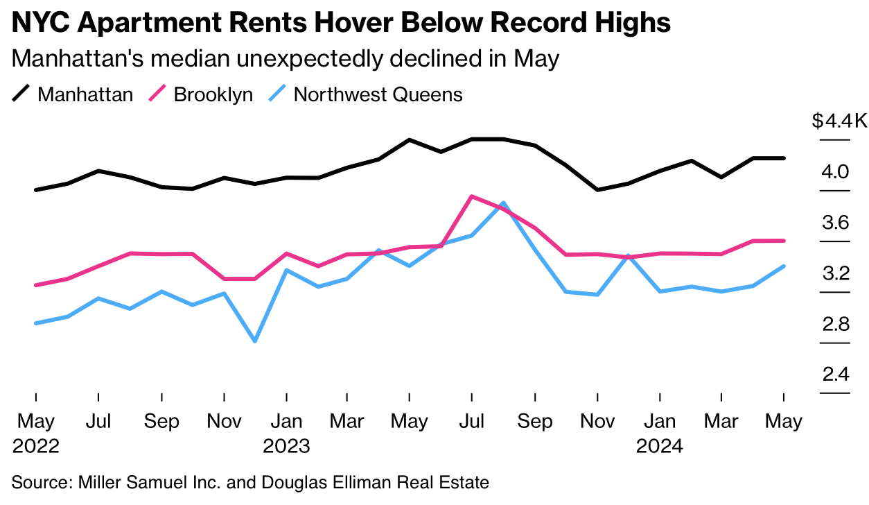 - Manhattan Apartment Rents Drop Even as Leasing Activity Picks Up [Bloomberg]