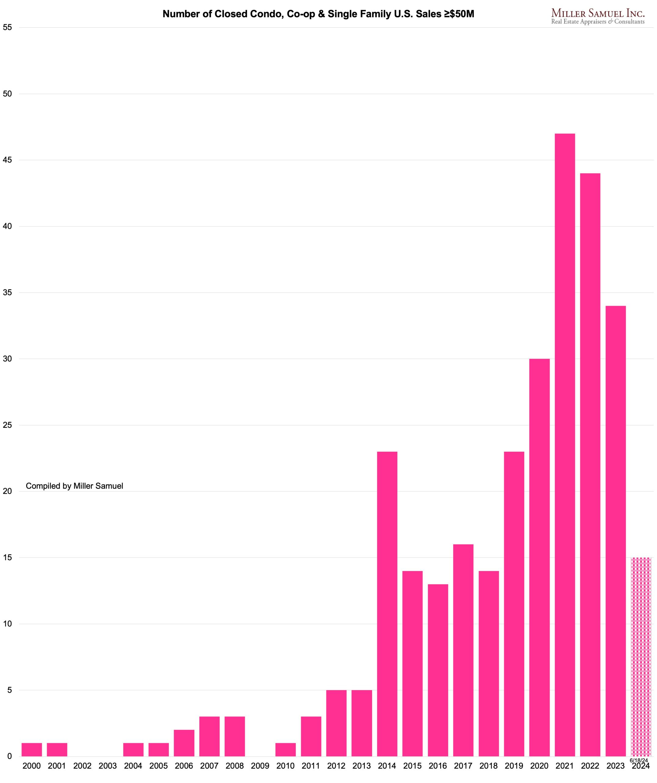About a decade ago I began tracking U.S. home sales at or above the $50 million price threshold as a hobby (yes, I’m quite dull and boring). I got the idea to maintain the list about fifteenish years ago. The effort has become a weekly work-in-progress as this market gets most of the real estate eyeballs but literally has nothing to do with housing for mere mortals.