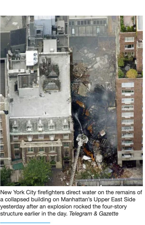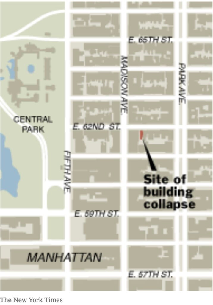 After my video interview aired, a colleague of mine, who was a former managing director of one of the large Manhattan real estate brokerage firms, told me he was leasing a ground floor office adjacent to the townhouse within the co-op apartment building next door known as Cumberland House at 30 East 62nd Street. He was working at his desk when a wall of debris came pouring over him from the adjacent property’s explosion. He wasn’t hurt other than some cuts and bruises. In addition, a commercial appraiser I know reached out and told me he was inspecting a building across the street from the former townhouse on an appraisal assignment when the explosion occurred. Amazing. I also remember reading about some pedestrians walking on the sidewalk when the townhouse exploded who were injured, supposedly 14 people, but thankfully, no one was killed. The news coverage of the tragedy triggered its share of other real estate personal stories related to difficult situations.