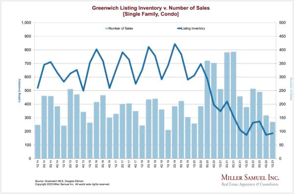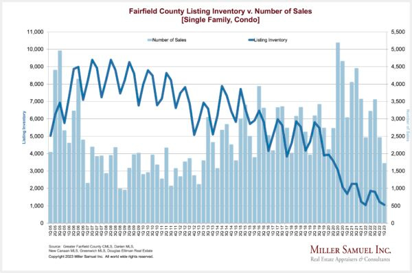 – Sales have declined sharply below the frenzied elevated sales levels of 2021 and early 2022 and also below pre-pandemic levels due to higher mortgage rates and anemic listing inventory gains from record lows