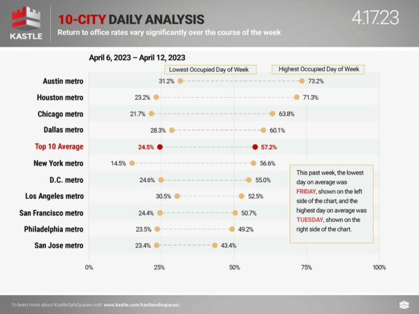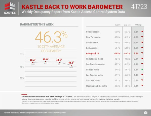 Remember that Kastle charts are overstating occupancy* because their pre-pandemic occupancy benchmark was 100% which is simply incorrect (*measures card swipe activity as a proxy for occupancy).