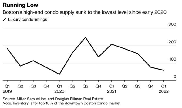 – Luxury listing inventory fell to a record low for the seventh straight quarter