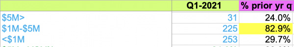There was a “massive surge” in sales activity in the $1 million to $5 million range, where the number of sales jumped by almost 83% compared with a year earlier…