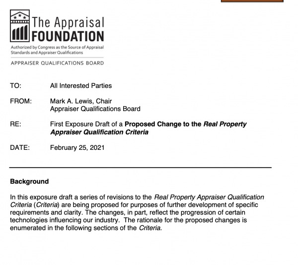 TODAY IS THE LAST DAY To Submit Comments On The First Exposure Draft of a Proposed Change to the Real Property Appraiser Qualification Criteria