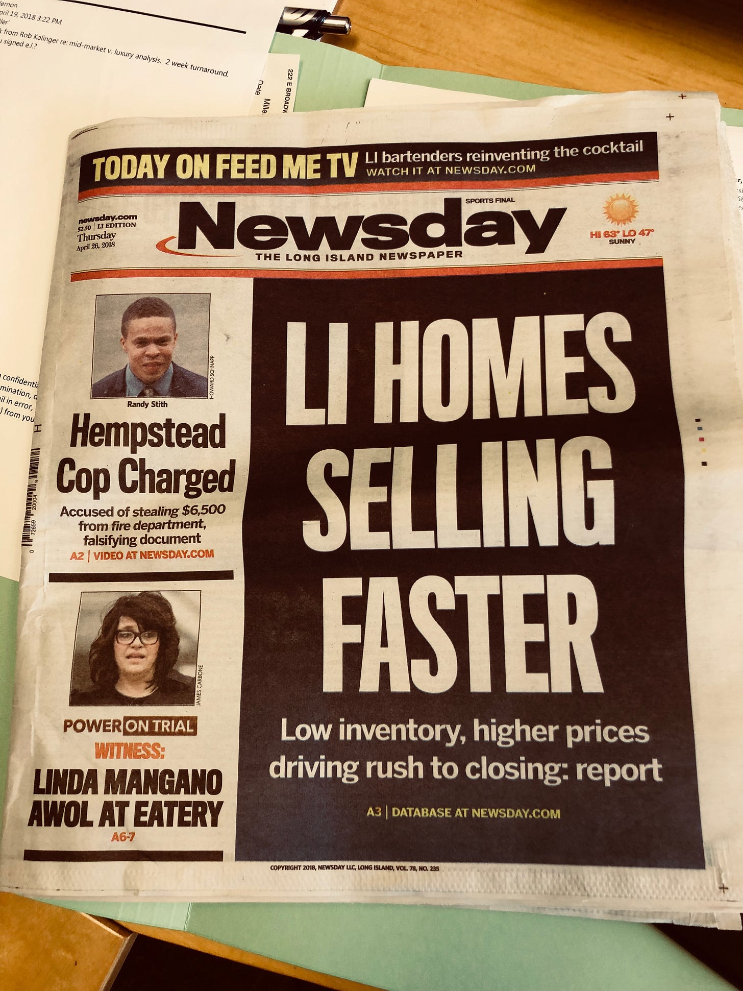 And Newsday’s article of the Long Island report made the cover of the paper.