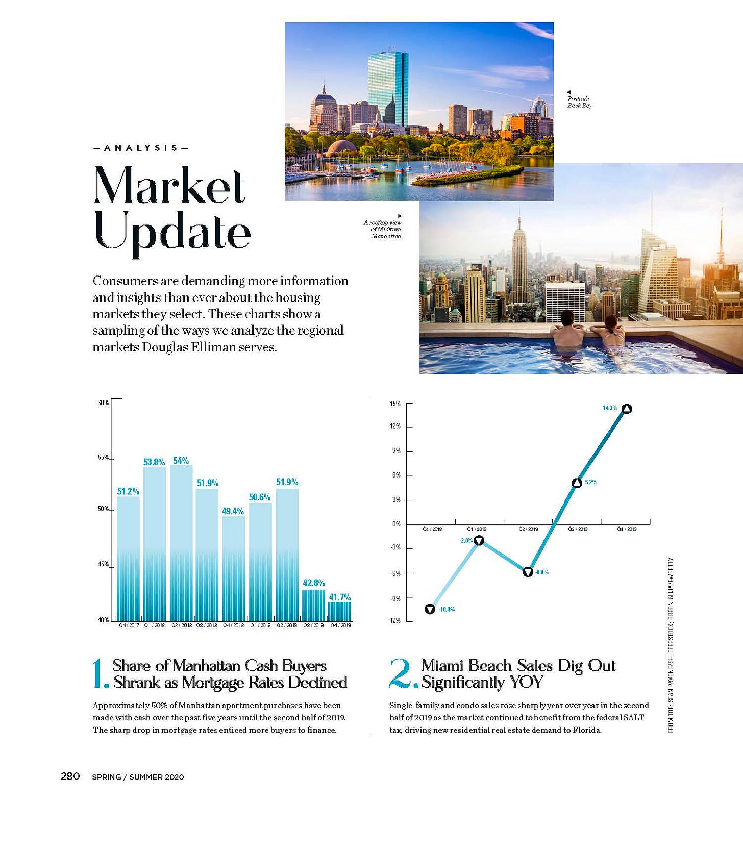 Before the virus outbreak, I whipped up eight charts for Elliman Magazine using data from our expanding Douglas Elliman Market Report Series to touch base on a wide array of U.S. housing markets. These charts appeared on pages 280-282 in the 2020 Spring/Summer edition of Elliman Magazine. Click on each graphic to expand.