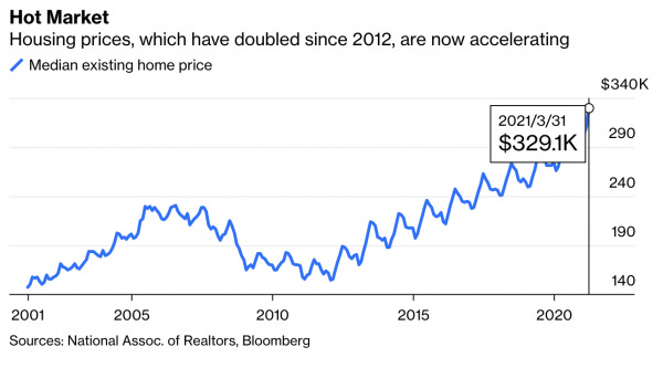 There was a terrific Bloomberg piece last week: The Most Important Number of the Week Is $329,100The median price of an existing home in the U.S. rose to a record in March, but don’t call the housing market a bubble.