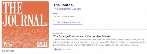 The Journal Podcast: The Strange Economics of the Lumber Market (retail prices skyrocket while raw prices fall)