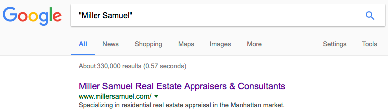 I did the same search for my residential appraisal firm “Miller Samuel” which is not the largest U.S. appraisal trade group in the appraisal industry.
