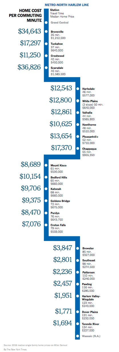 At the request of the New York Times, I crunched numbers that they turned into a beautiful infographic. Here was my prior commuter analysis in Fairfield County.