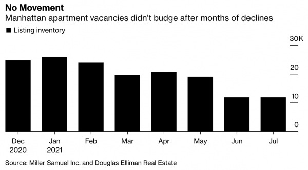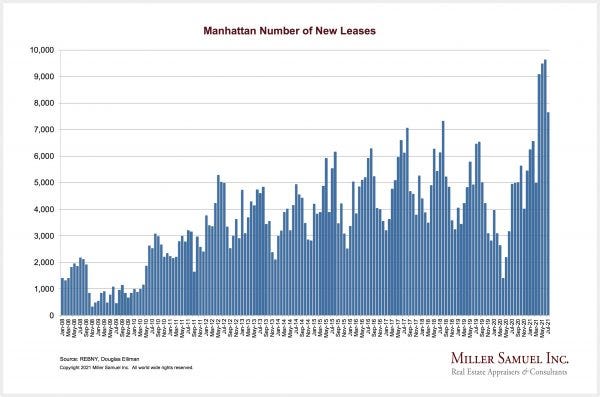 One of the most volatile housing segments we cover, post-pandemic lockdown, has been the NYC rental market, given the larger economic damage directed at lower wage earners. Until recently, the rental market recovery has been a rocketship with expectations of a second wave of rental demand to come in September as Corporate America begins to call their workers back. Wall Street started the back-to-work discussion last month with a number of financial institutions expecting their workers to return to a 5-day office week beginning after Labor Day. A CEO said (and I’m paraphrasing from memory) that if you weren’t willing to come into the office five days a week and work long hours then you need to switch industries.