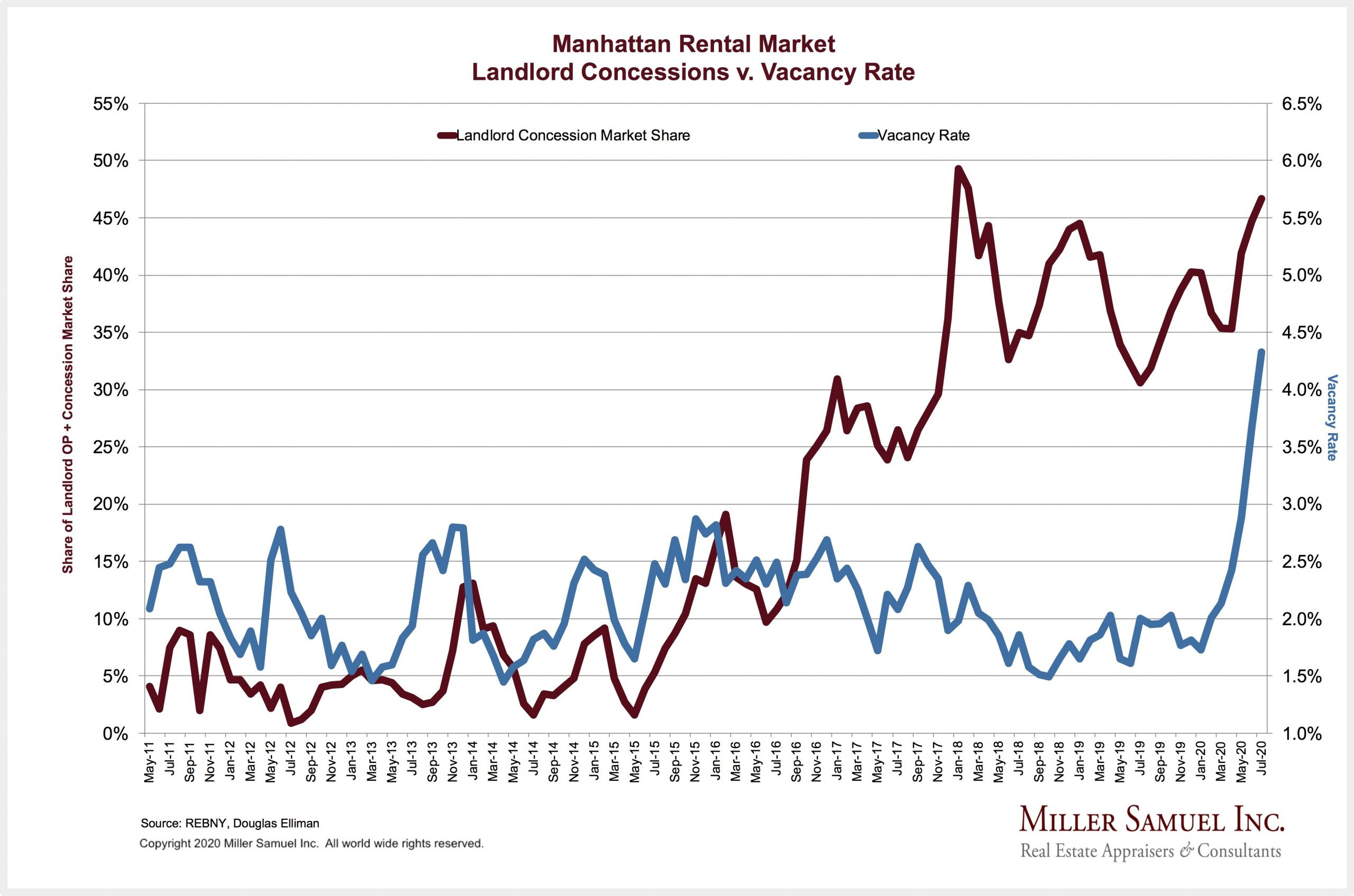There are many New Yorkers wondering if the surge in vacancies will eventually exceed 5% thereby nullifying rent stabilization. After all, the vacancy rate in Manhattan for July was a record 4.33% – and those questions started trickling in.