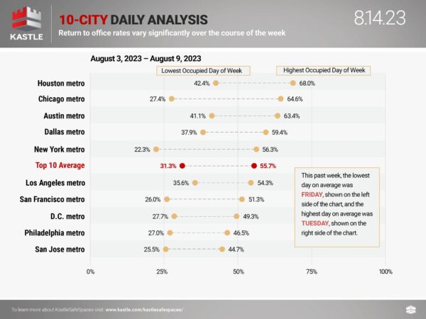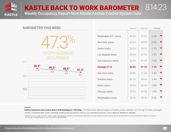 Remember that Kastle charts are overstating occupancy* because their pre-pandemic occupancy benchmark was 100% which is simply incorrect (*measures card swipe activity as a proxy for occupancy).