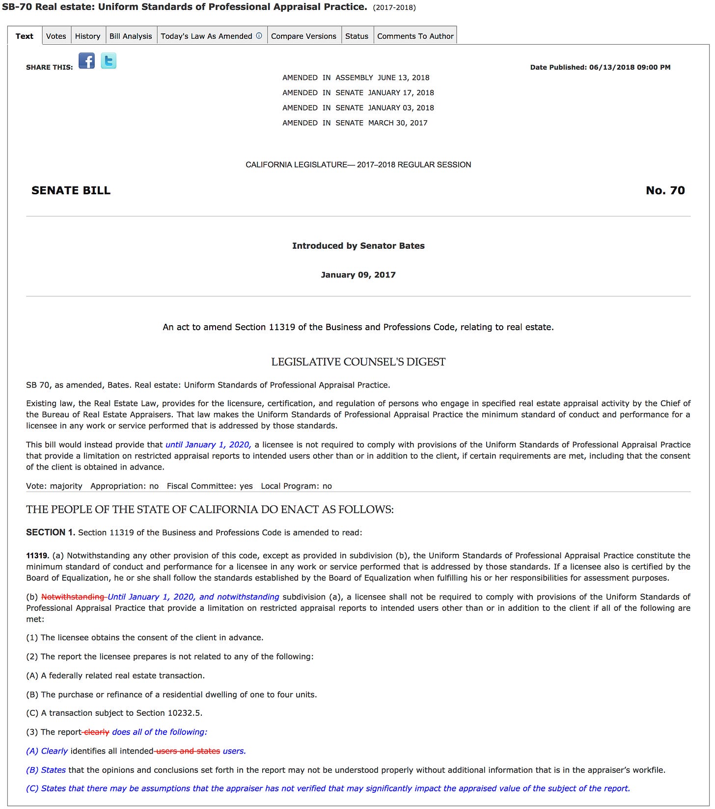 Bill Text – SB-70 Real estate: USPAP [California Legislature]