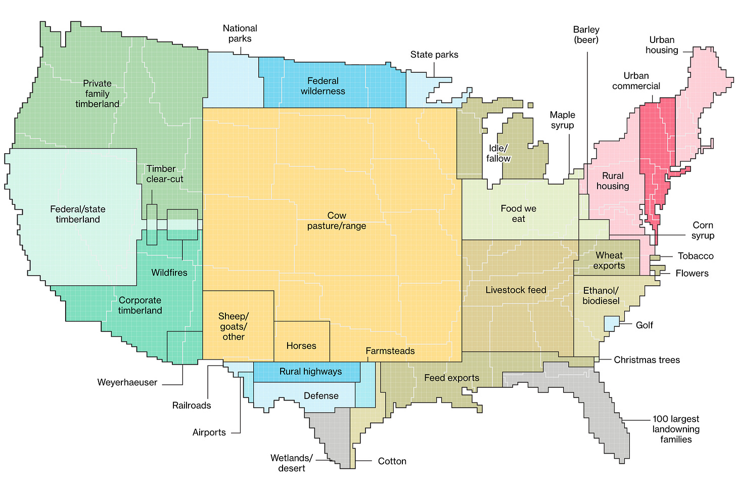 There is a visualization piece in Bloomberg that I can’t stop scrolling through. Here is one of many visualizations in Here’s How America Uses Its Land.