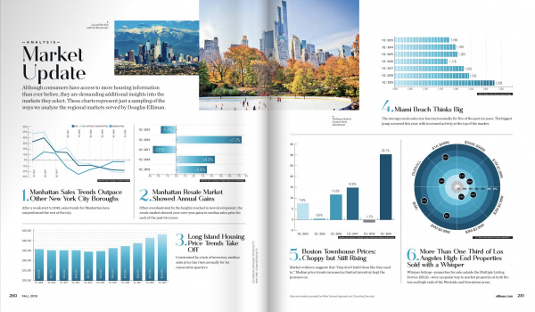 As regular readers of my Housing Notes have noticed, I create a full-page spread for Douglas Elliman Real Estate’s quarterly magazine using the results of my U.S. market research. I’m no Len Keifer but still, the visuals are pretty cool.