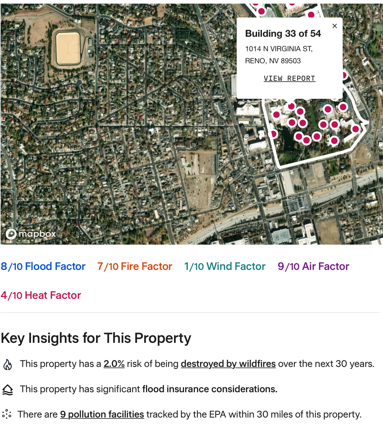 I think First Street is going to become a household name to consumers after this recent burst in visibility to a company that has been around for years. Take some time to explore their website. Here’s a screenshot of the information that can be culled from specific properties. This property has a 2% risk of being destroyed by wildfire in 30 years. Wow.