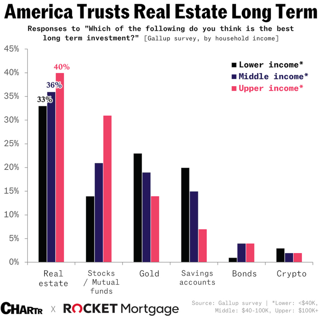 I suspect the following Gallup poll that shows the trust in long-term real estate investment will be reset soon. The survey needs to differentiate between the various types of real estate assets. As we are learning – not all real estate assets are performing the same way. Commercial office values are being “slashed” nationwide.