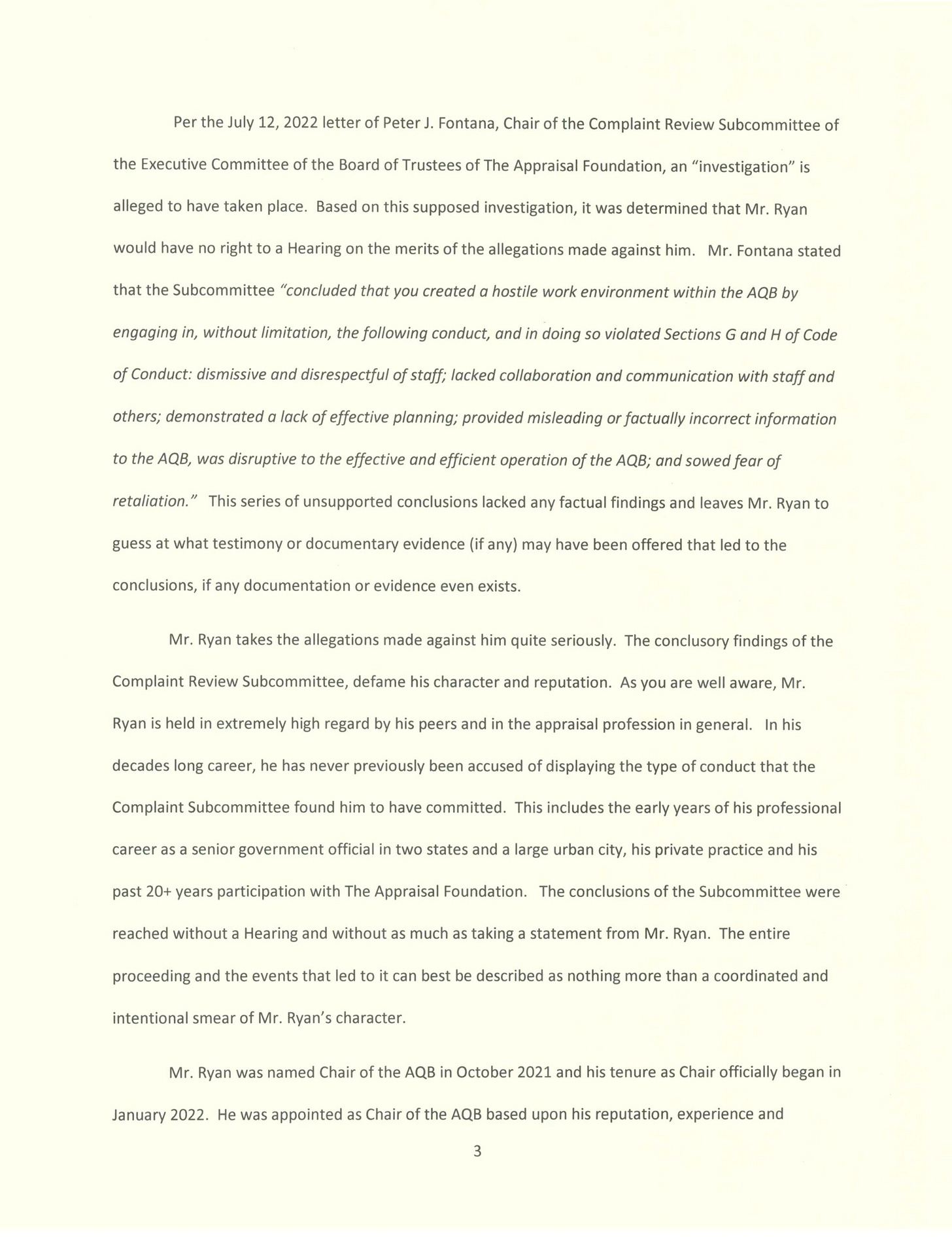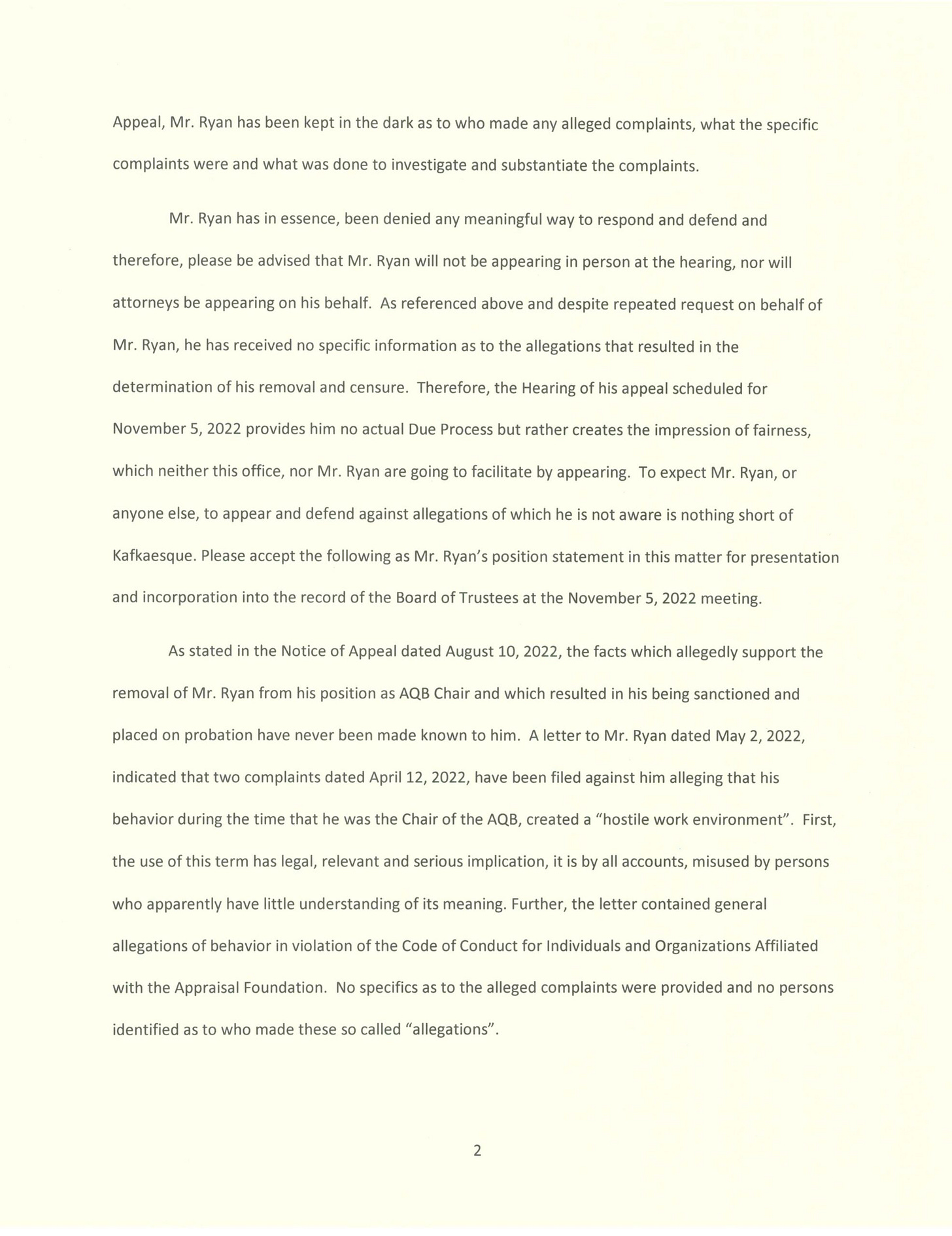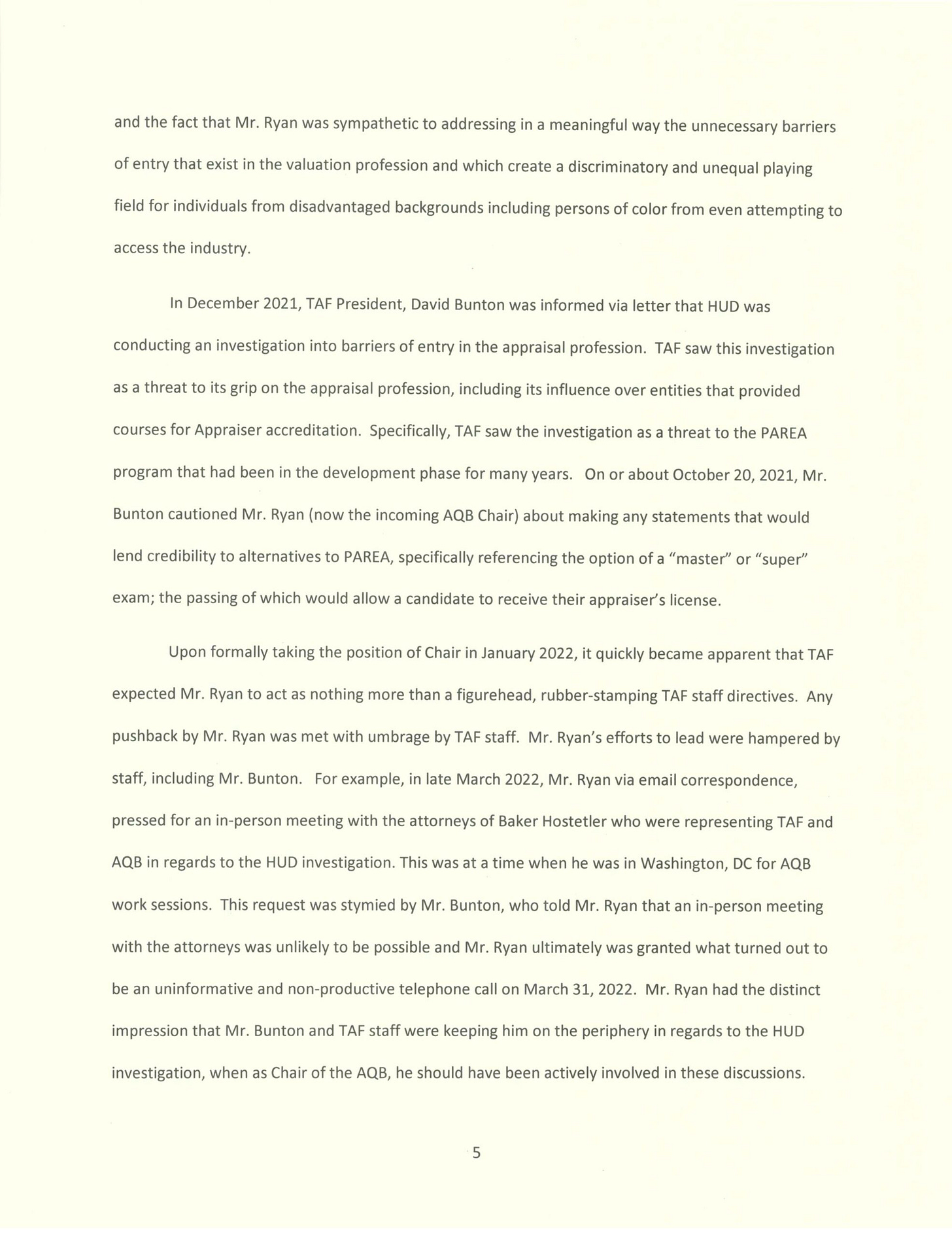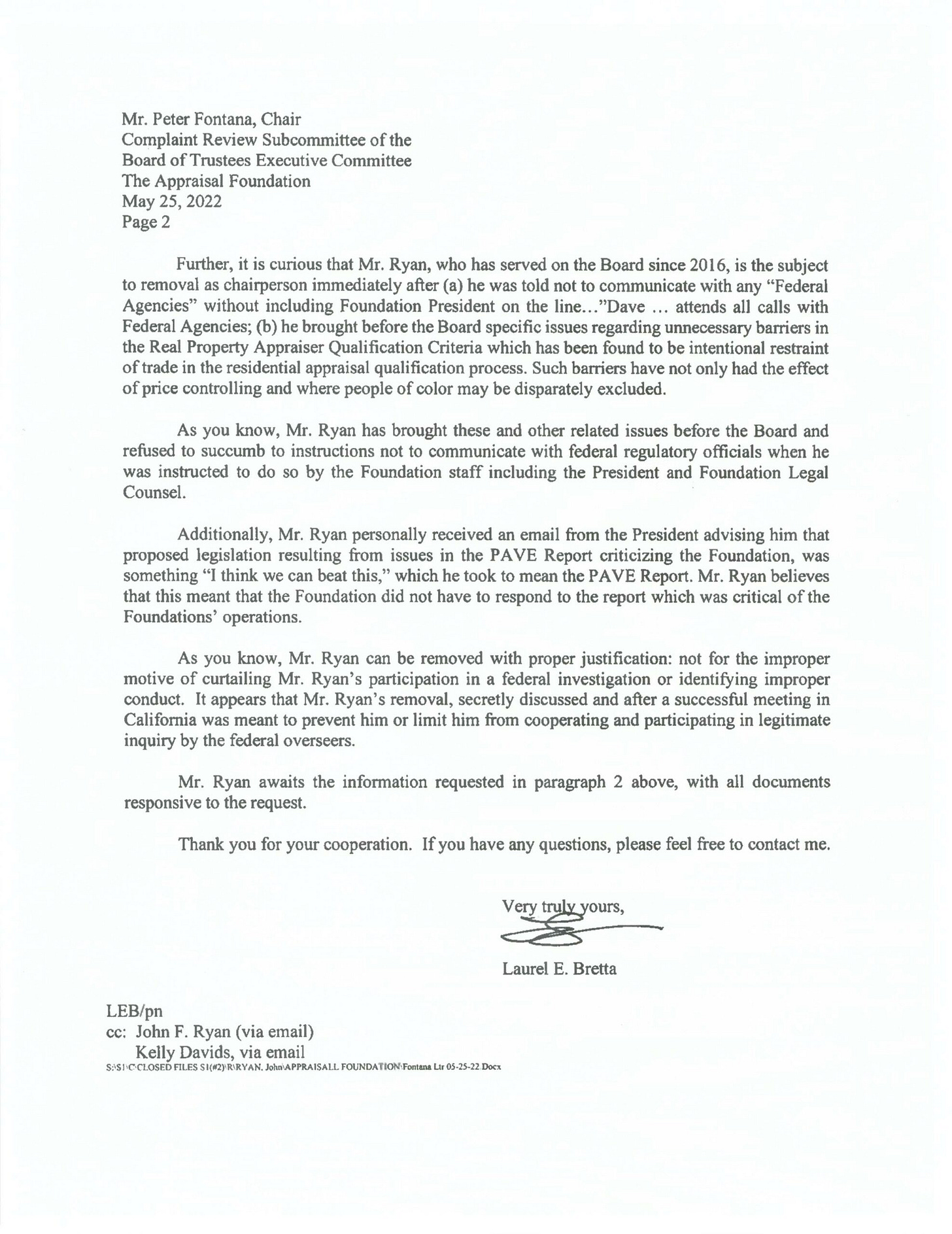 May 25, 2022, Letter Asking for specifics in writing why he was removed as AQB chair.