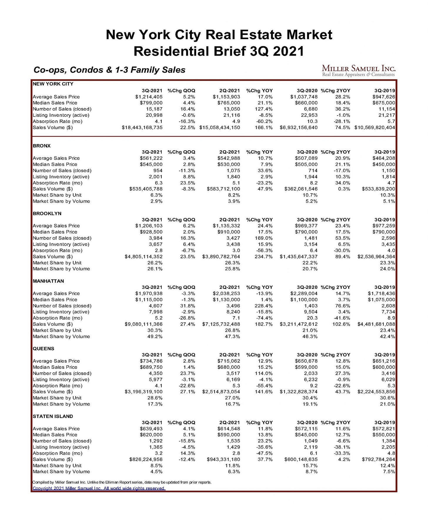 NYC Real Estate Market Residential Brief 3Q 2021 [Miller Samuel]
