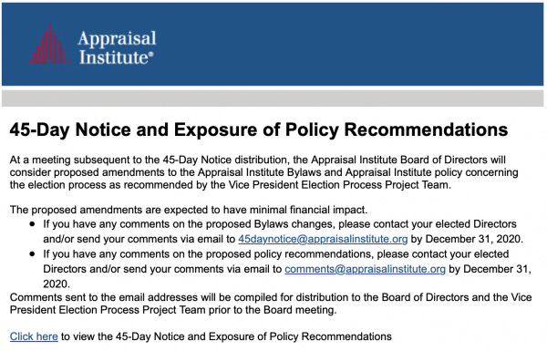 45-Day Notice of Proposed Amendments to Appraisal Institute Bylaws