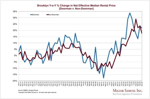 – Doorman rents showed a weaker month over month price trend than non-doorman rents
