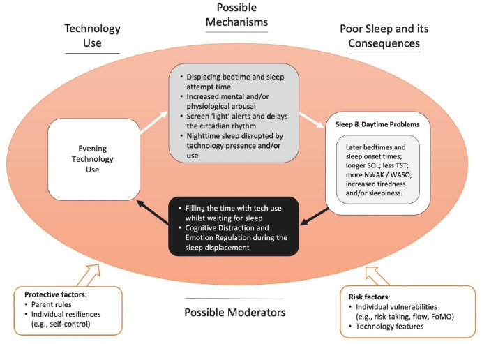 See the insights shared by the WSJ: Screen Time Before Bed Might Not Be That Bad After All and the study itself: A bidirectional model of sleep and technology use: A theoretical review of How much, for whom, and which mechanisms. Oof. Say that title quickly. Here are some fascinating graphics from the white paper.