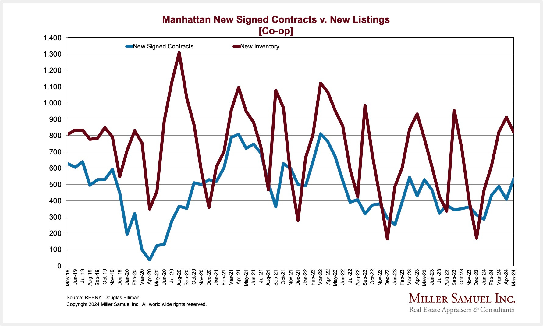Newly signed co-op contracts were up 1.1% annually as new listings rose 5.3%.