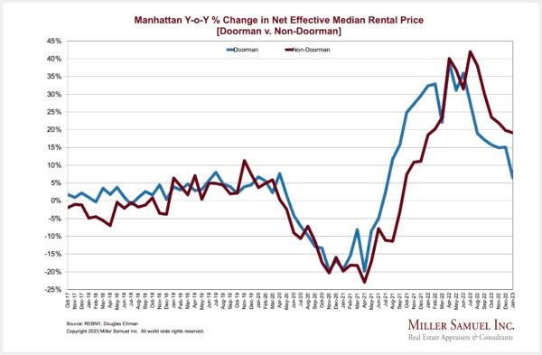 – New development new leases rose year over year at five times the rate of non-doorman rents