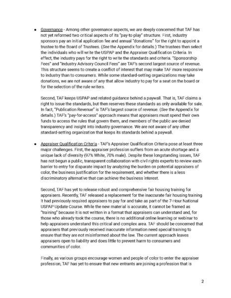 TAF hasn’t shown any tangible solutions to the industry’s 98% (dead last per BLS) white appraiser and lack of diversity issues. They need to be made aware that it is a real problem in the context of public trust. Dave has called it a “nothing burger” internally. TAF only attempts bureaucratic publicity stunts because they reside within a bubble. It was soundly rejected by serious organizations trying to resolve these issues because they recognized how disconnected and ungenuine the offer was.