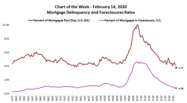 MBA released its latest National Delinquency Survey – for the fourth quarter of 2019 – earlier this week. Mortgage delinquencies track closely to the U.S. unemployment rate, and with unemployment at historic lows, it’s no surprise to see so many households paying their mortgage on time.