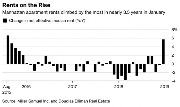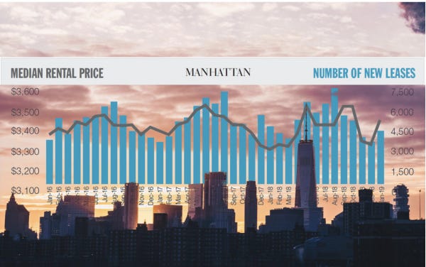 First of all, Bloomberg News coverage of the Manhattan rental market gave me a “twofer” in the chart department. And you all know how much I love charts.