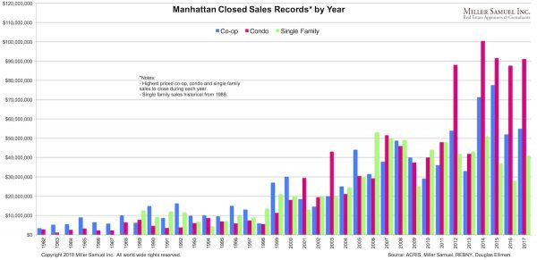 Here is an ongoing chart I maintain with the highest Manhattan sales prices set for each year:
