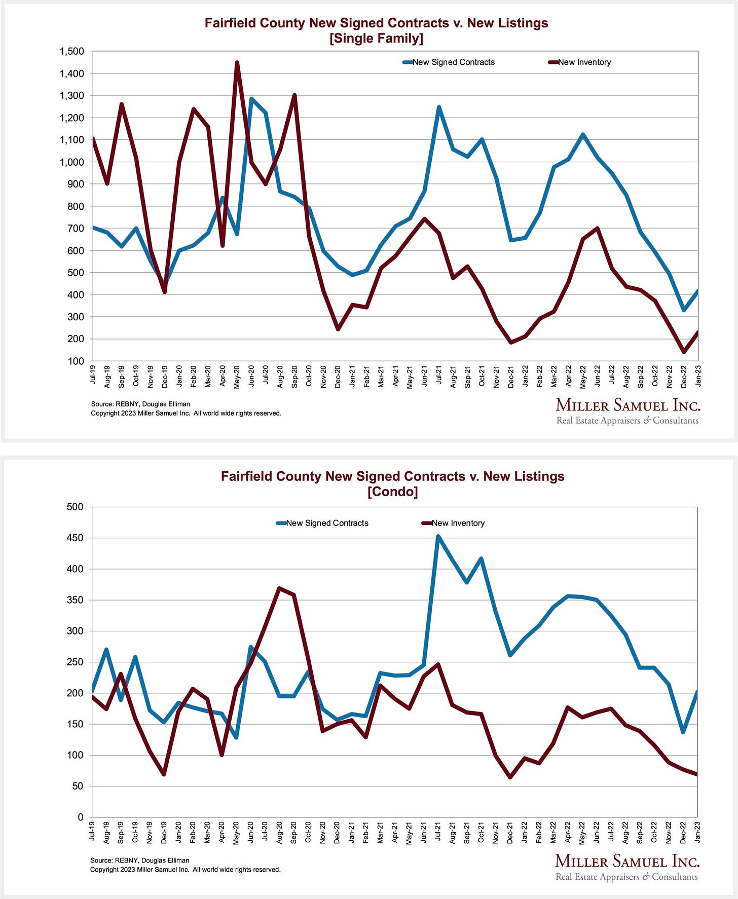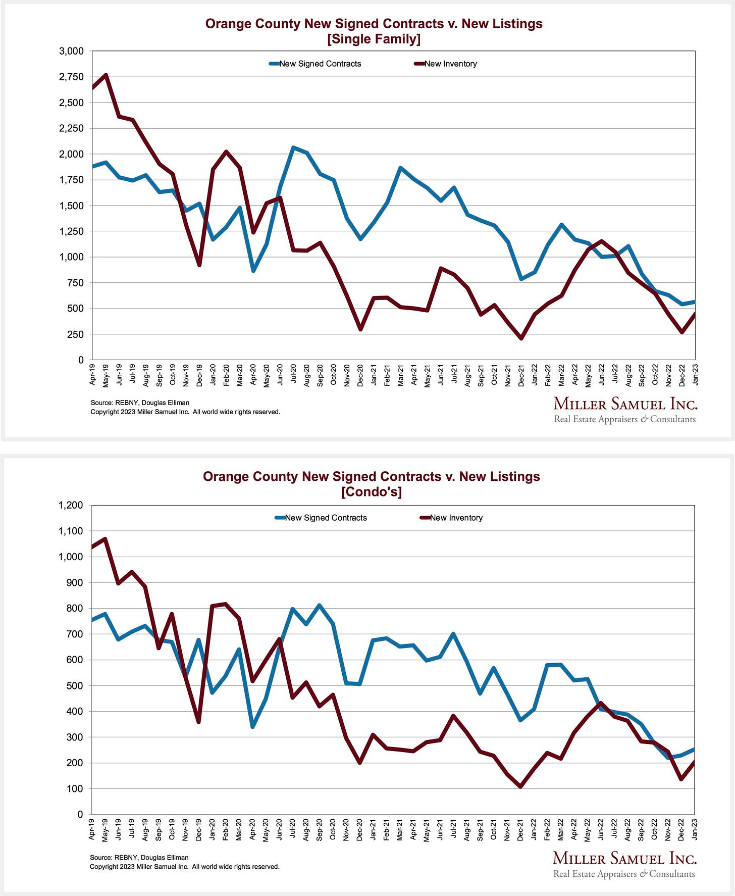 Newly signed contracts declined month over month for the second time in five months as new listings expanded for the first time since September. However, on an annual basis, the decline in newly signed contracts has been partially offset by significant decreases in new listings.