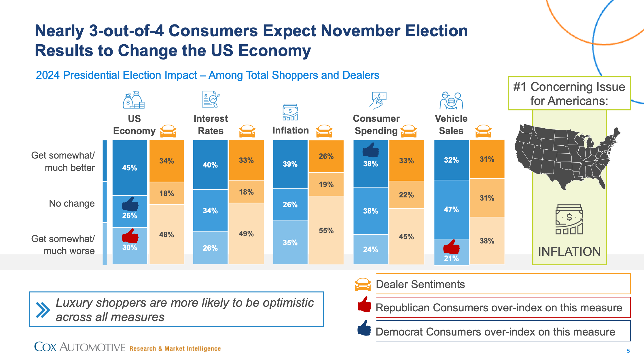 Amazon sees hesitation since the election is occupying consumer minds. QVC and Home Shopping Network see election-year pullbacks, as do auto sales. Here is an excellent consumer election research by Cox Automotive. Interestingly, they indicate that luxury shoppers are more optimistic across all issues. However, credit card usage towards bigger ticket items is on the downswing, as are fall wedding bookings.