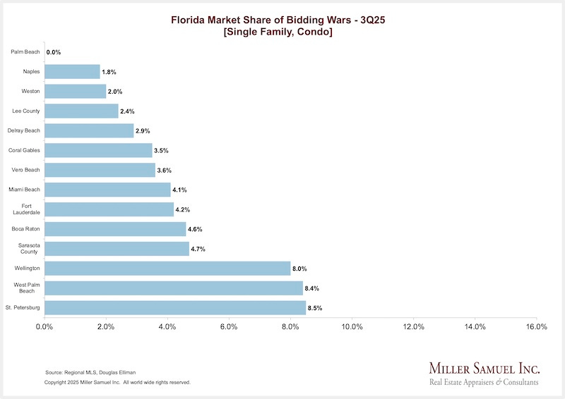 Bidding wars in the 14 markets are normalizing. Just a few years ago, the market share of buyers paying more than the last asking price was many multiples higher than it is now, which is what happens when supply re-enters the market.