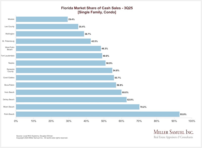 Cash is still king in Florida, but not at record levels. These purchases are a way to navigate around elevated mortgage rates rather than having an advantage over competing buyers for the property (see chart above).