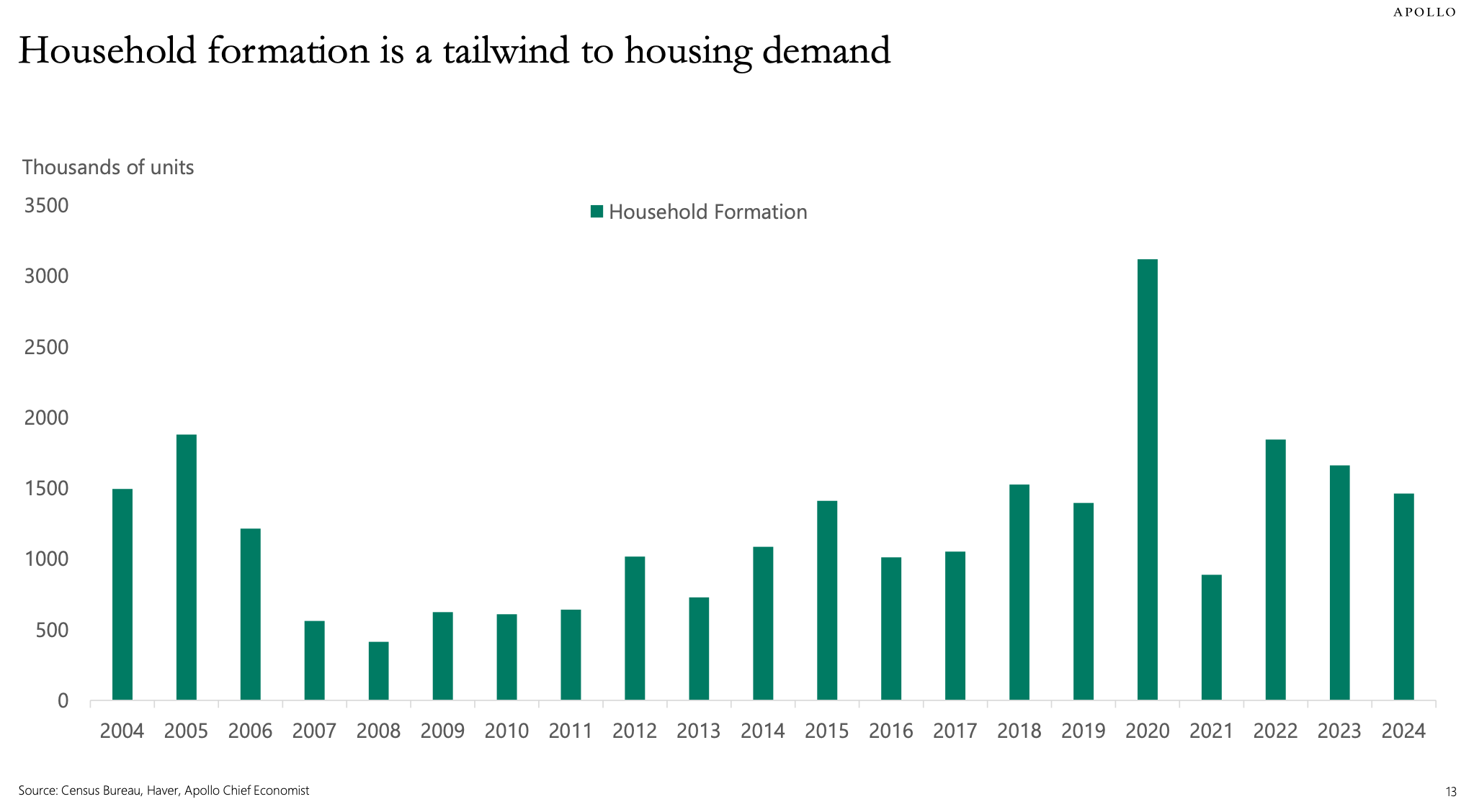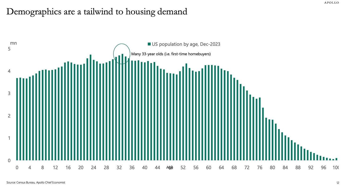 Pent-up housing demand is significant so the direction of interest rates can create a surge in actual demand in the flip of the switch looking at Apollo’s summary: