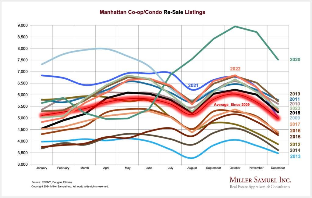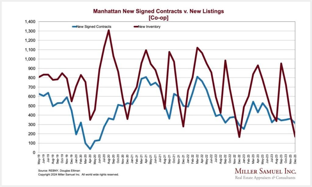 I struggled to better my 2023 market description: “2023: The Year of Disappointment.” I ended up with a 2024 descriptor of “2024: The Year of Incremental Change.” When I mentioned this descriptor to reporters, I could hear a pin drop and then a sense of their disappointment. Brick Underground went with it first in their must-read 2024 forecast piece.