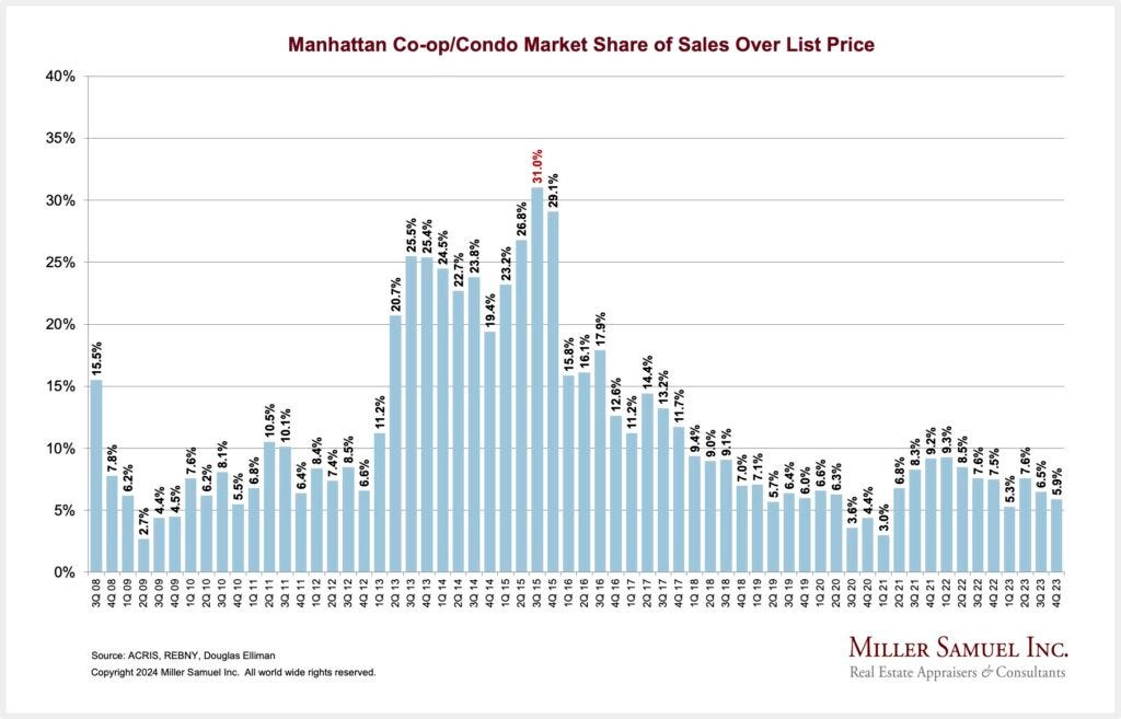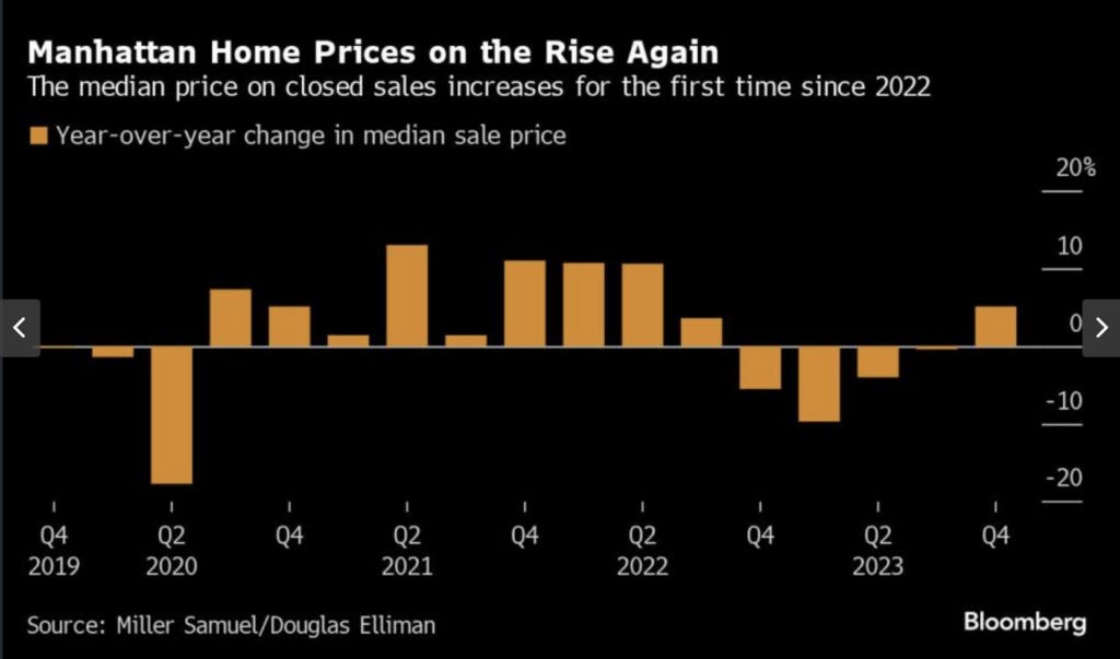 I’ve been the author of a market report series for Douglas Elliman since 1994 that began with Manhattan and now covers other markets, including Boston, Connecticut, Long Island/Hamptons/North Fork, Florida, and Southern California. This week we published the Elliman Report: Q4-2023 Manhattan Sales.